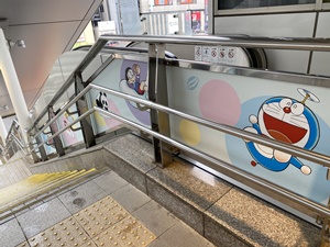 駅を降りると、たくさんのキャラクターがお出迎え。