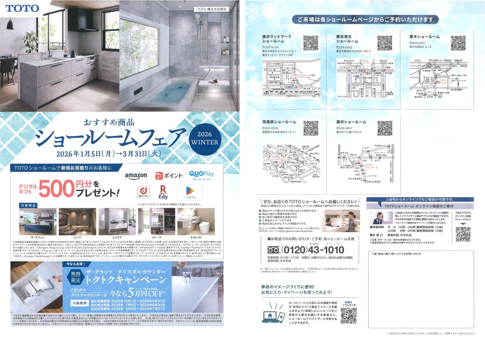 さて、今日は TOTO からショールームフェアのお知らせです。
