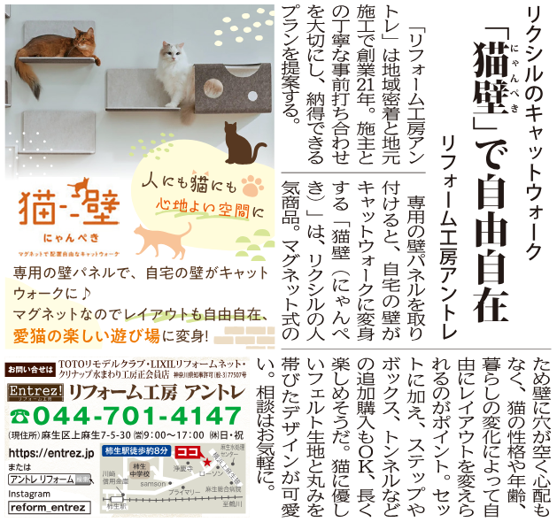 タウンニュース(1/30号)~猫壁で猫ちゃんの快適生活~