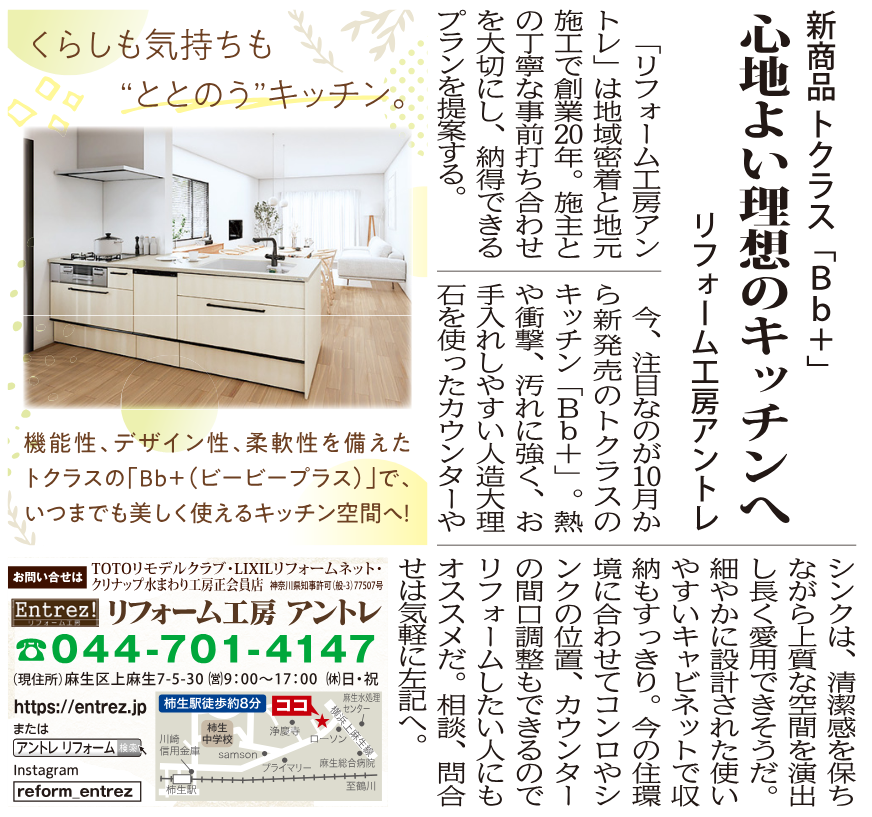さて、タウンニュース10/17号では、2025年10月に新発売したトクラス「Bb+」のご紹介をしていただきました。