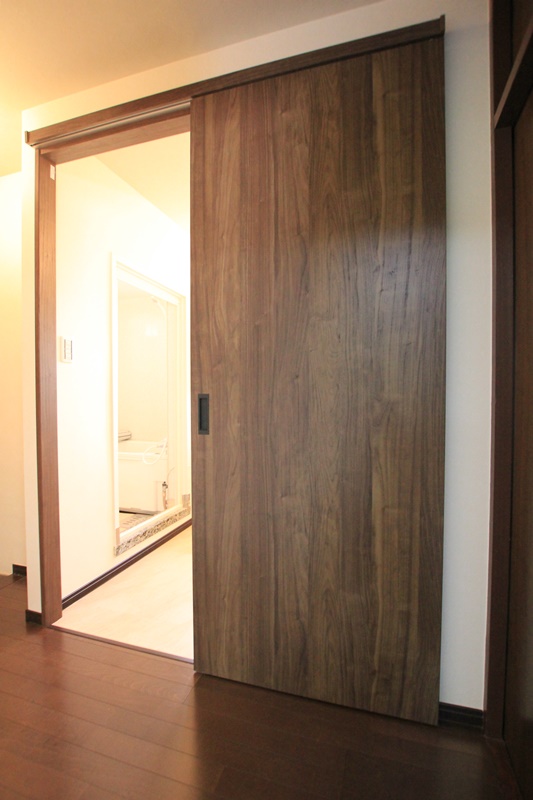 今まで不便だったのは、廊下とつながっていて脱衣スペースがなかった洗面所。今回の工事で、隣にあるトイレと空間をつなげることで脱衣スペースを確保しました。新たに引き戸も設置し、プライバシーにも配慮しました。