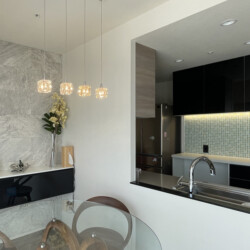 - ハイグロス×ガラスモザイクの洗練されたキッチンに