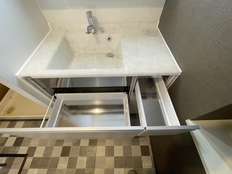 お風呂からの湿気にも強いステンレスキャビネット洗面化粧台