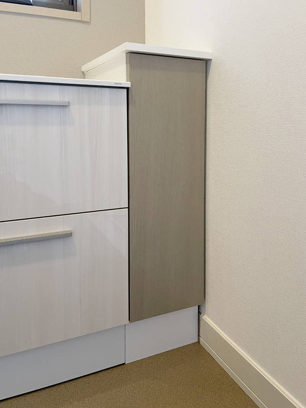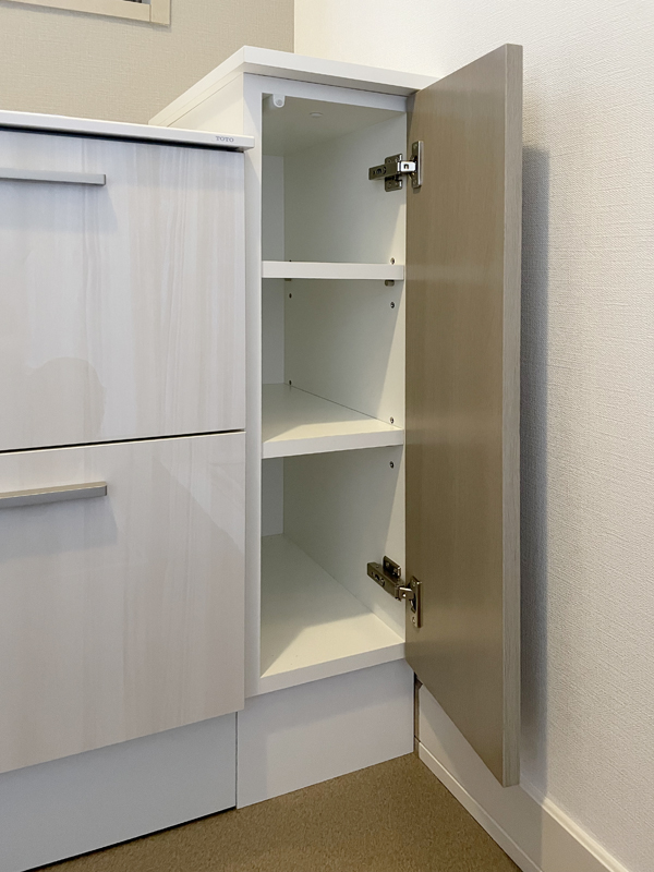 オクターブスリムではスペースが余ってしまうので、余ったスペースにはオーダーで収納を設置しました。