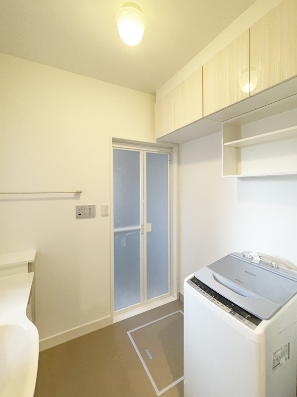 洗面所の入口ドアとの位置関係で既存より奥行きがある洗面台は入らないことがわかり、設置できる洗面台の機種が限られていました。
