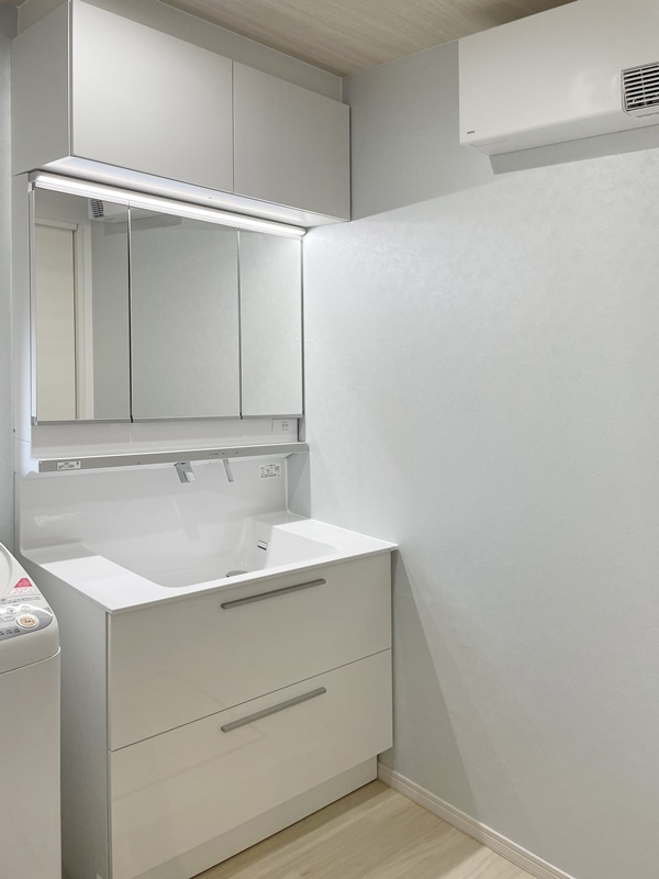 冬場の寒さ対策として、洗面暖房機を新たに設置。寒い朝でも快適に身支度ができるようになりました。