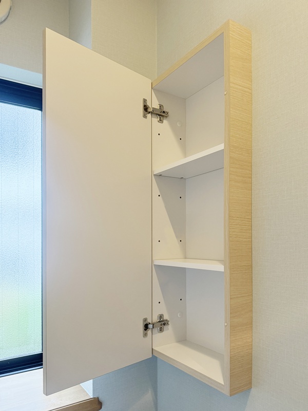 収納としての機能はもちろん、奥様がセレクトされたペーパーホルダーがアクセントとなり、空間全体にセンスと遊び心がプラス。実用性とデザイン性を両立した、トイレ空間のリニューアルとなりました。